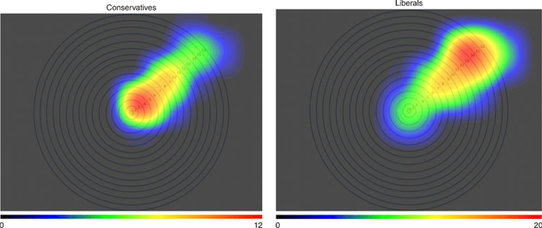 It isn’t. The heatmap was just a poorly-designed attempt to represent the limit of concern. If the liberal map is “hottest” at animals, that means liberals say animals are worthy of at least some care. If a conservative’s map is “hottest” at friends, that means the conservative only cares about their friends (and doesn’t care at all about countrymen, foreigners, or animals).