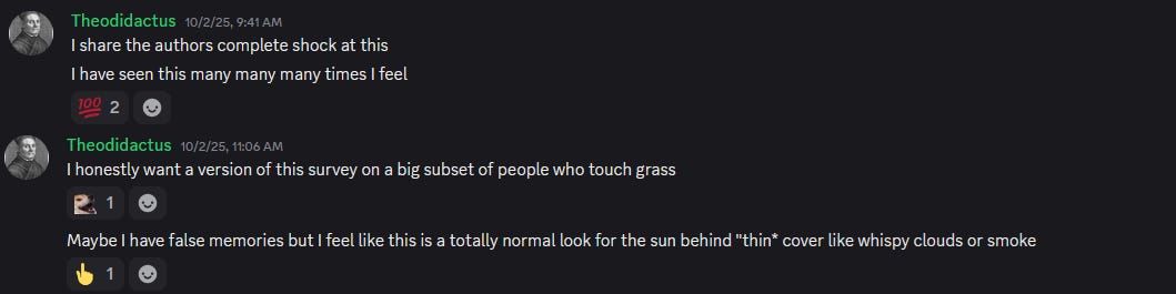 Together, I think these are a significant negative update from where we would be if we only had the original miracle, where we might have assumed (like Dalleur) that it was an objective phenomenon that everyone could see, and that there was no way anyone could be “enthusiastic” enough to hallucinate something so striking.