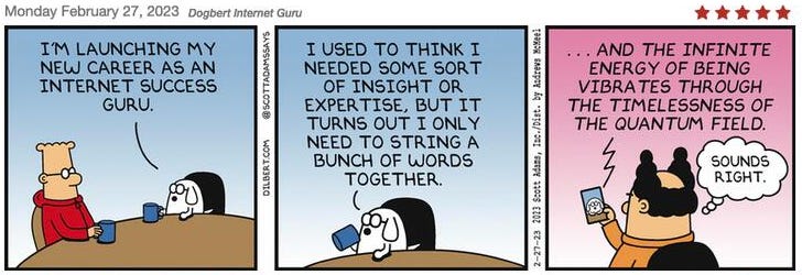 This is making me somewhat regret accusing Adams of wanting to be the Pointy-Haired Boss. It would have been fairer (and less of an accusation/surprise) to accuse him of wanting to be Dogbert. But again, Dogbert doesn’t represent a real thing you could be, which might have been why the PHB made a better metaphor.