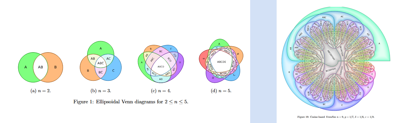 1: It’s easy to draw Venn diagrams for two or three concepts, and doable for four or five, but after that it starts to get thorny.