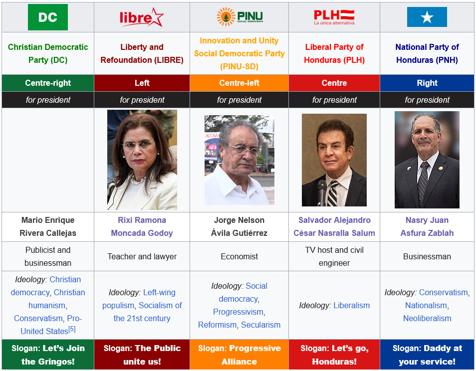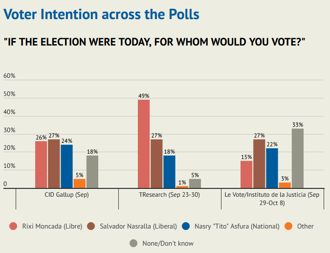 …with Rixi Moncada (socialist), Salvador Nasralla (liberal), and Nasry Zablah (right-wing) all making strong showings. My impression is Moncada would be worst for Prospera, Zablah best, and Nasralla somewhere in the middle.
