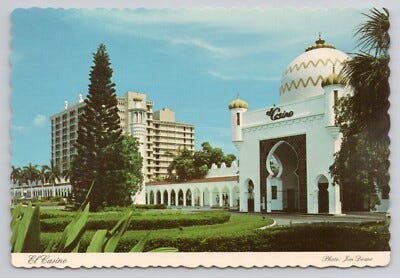 The golden age ended around 1970. The government, headed towards independence from Britain, became embarrassed by the private enclave and stripped away some of its rights. Around the same time, Florida liberalized its gambling regime, cutting off the flood of Floridians coming to play the slots. Control of the concession passed from Groves, to his business partners, to his business partner’s widow, and finally to a random collection of only mildly-interested heirs. Two big hurricanes in 2004 were the last straw. Grand Bahama is still a popular cruise destination, it still has a well-built port and surprisingly nice airport, and some of the old hotels still stand. But nobody would describe it as a happening place.