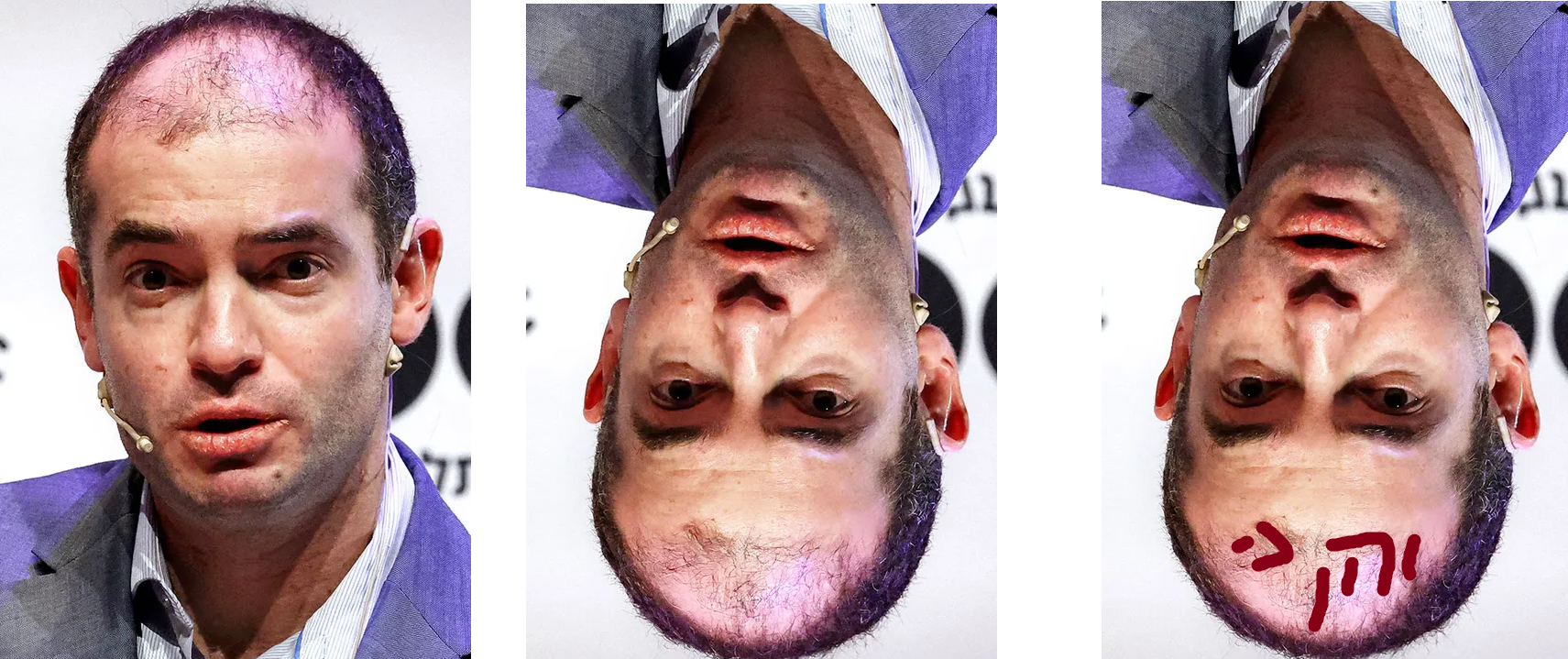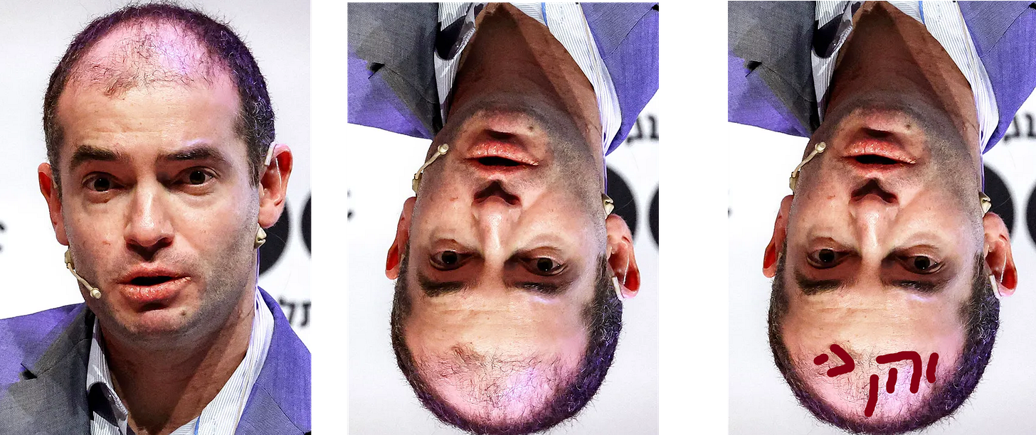 Is there some sense in which Ilya Sutskever has “his Father’s name written on [his] forehead”? As weird as it sounds, I think this one might just be literally true. There is some kind of unusual pattern on his forehead (image source). I cannot make heads or tails of it right-side-up, but when I flip it over…