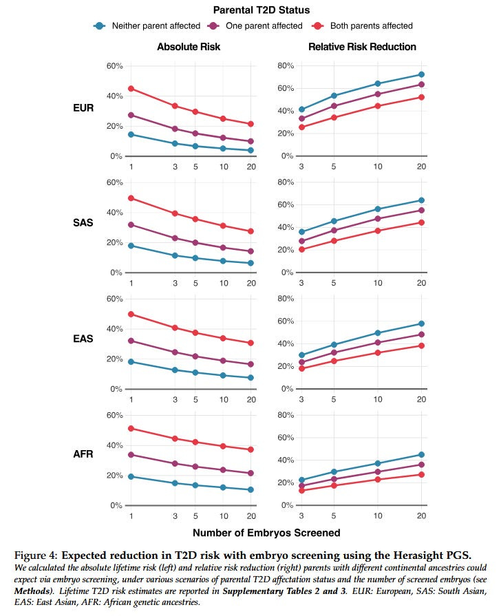 A European family with five embryos and no family history can cut their diabetes risk by 47%, and an African family 29%, with everyone else in between.