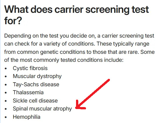 On their Substack, Herasight also criticizes Nucleus’ monogenic screening product. They point out cases where it fails to properly screen for the conditions it claims. For example, the Nucleus website advertises screening for spinal muscular atrophy: