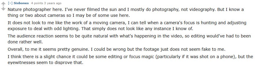 Someone who understands videography (or maybe someone who specifically doesn’t understand videography, idk) should do lots of experiments with videotaping the sun on normal days and see whether they can replicate the pulsing effect seen in the Medjugorje, Benin City, and Philippines video. If it’s just a natural artifact of trying to record the sun with a cell phone camera, it should pretty easy to replicate. If you try this, please email me your results whether or not you’re able to produce the effect.