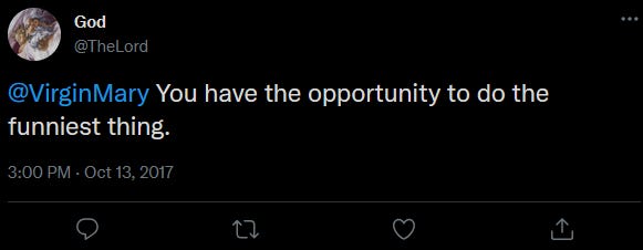 Although Quiera herself saw the miracle, she says her coachman didn’t (because he was feeding the horses). Although she plays this for laughs, other witnesses say that the whole world was changing colors and the sun was falling to earth and people were screaming that they were about to die. How hard was he concentrating on these horses?!