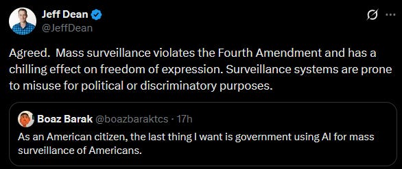 And big praise to most other AI companies, including Anthropic’s competitors, for standing up for them and for the AI industry more broadly:
