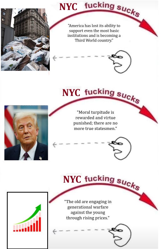 But even if these three factors are really making things worse, so what? Have previous generations never had three factors making things worse? Is our focus on the few things getting worse, instead of all the other things getting better or staying the same, itself downstream of negative media vibes?