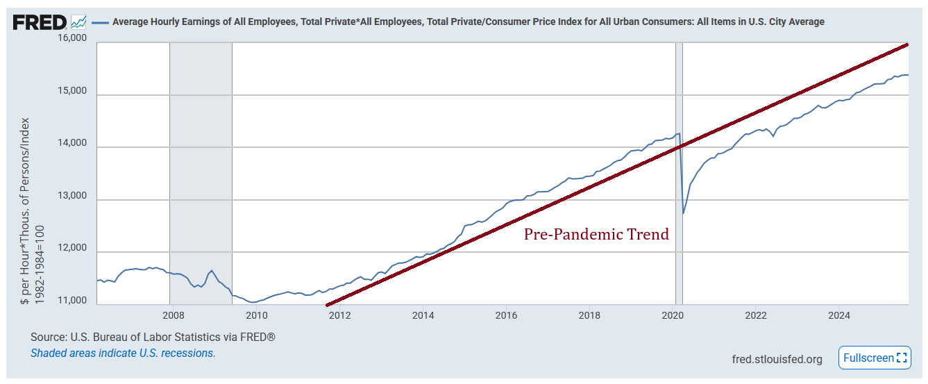 Since only the 2023-2024 period saw falling real wages, this can’t be the full explanation.