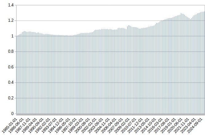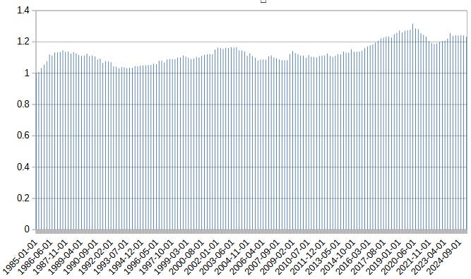 …but it matters a lot whether this that spike at the end is a temporary pandemic effect or a permanent regime change. I’ve tried to calculate an updated version from FRED data: