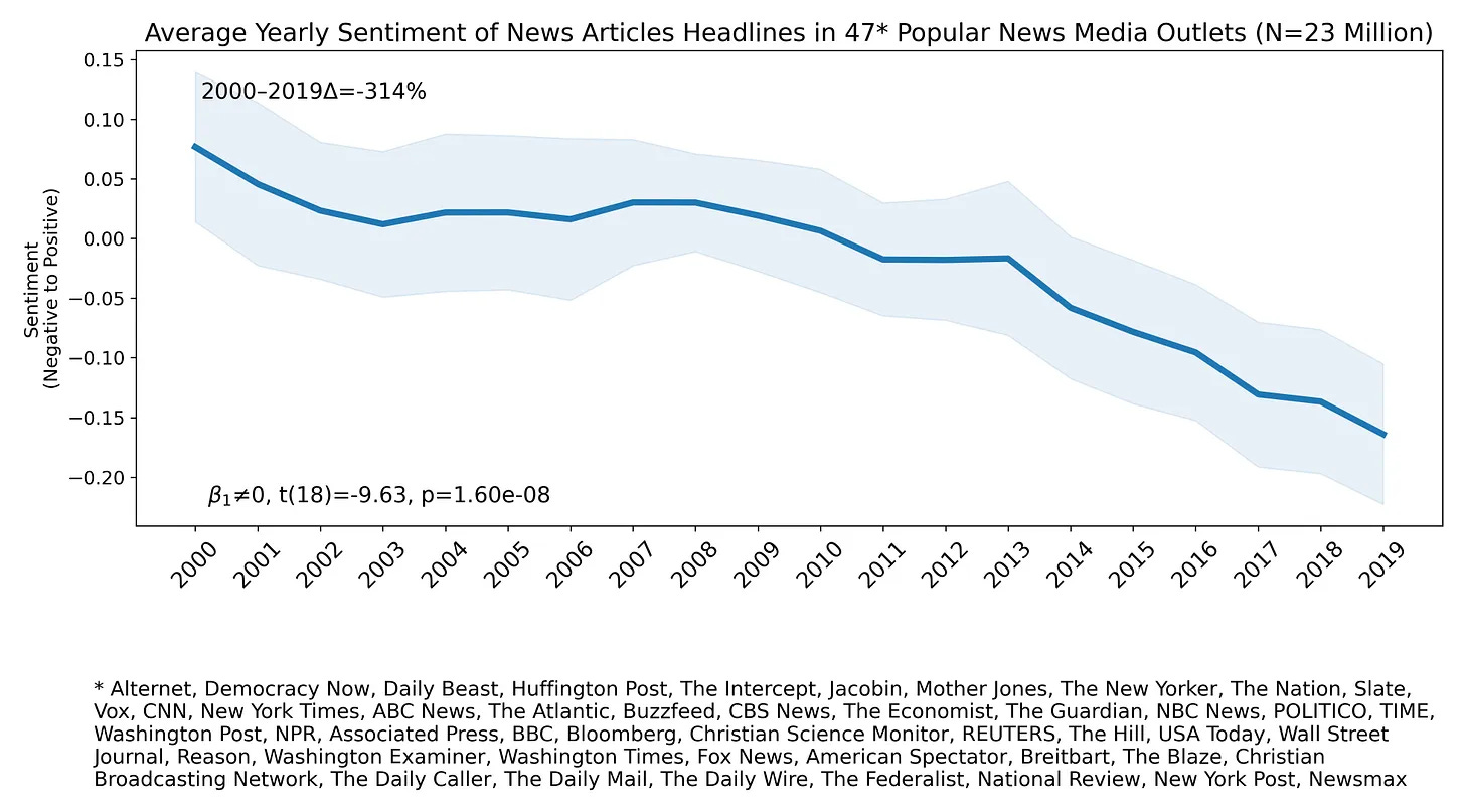 This measure likely underestimates the trend towards negativity, because it only tracks a specific basket of media outlets. But the change could also have included viewers shifting consumption from more mainstream outlets towards more conspiratorial ones, including social media and blogs.