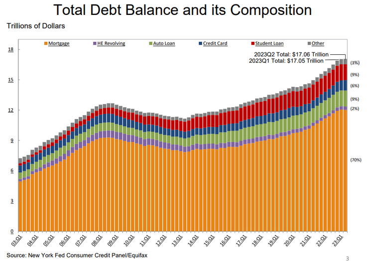 This is nominal dollars, so even though it looks like total debt went up from $7T to $16T, net of inflation it’s only from about $13T to $16T over that period. And there are more Americans now than in 2001, so debt per person might not have gone up at all. And most of the increase is mortgage, which we’ve covered already.