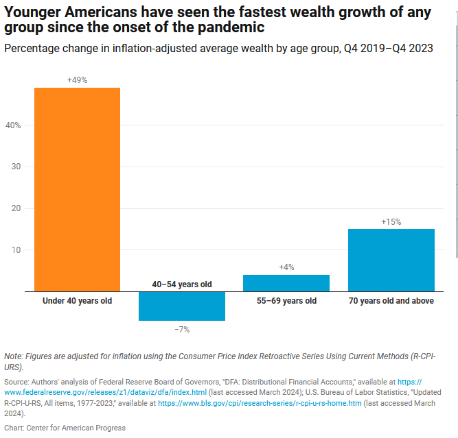 People don’t always notice their absolute wealth. They compare themselves to their neighbors, their parents, or themselves in the past. Might young people be doing better, yet still feel left behind because old people are doing better still?
