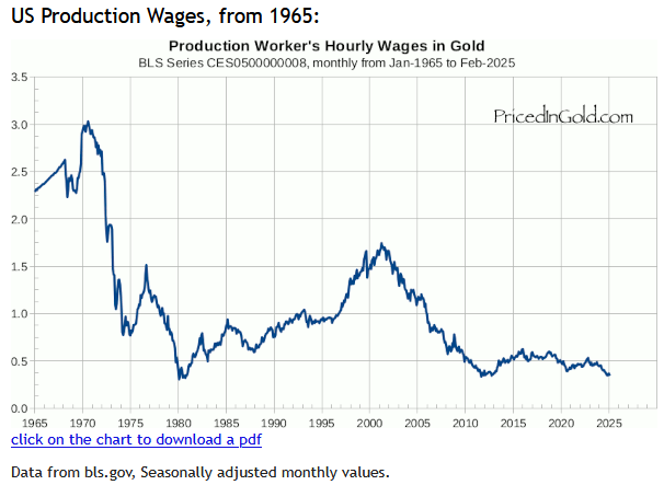 Every so often, someone makes a site with a name like TruthStats.org claiming that all government economic statistics are lies, and inflation is 10,000% higher than reported. Sometimes these use gold as a “real” price, and find that wages as measured in gold have gone down over time (source).