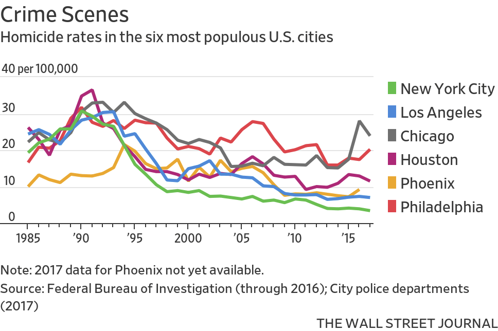 The early 1990s murder boom was due to crack. In places where crack arrived earliest -- NYC, DC, LA -- murders shot up in the very prosperous late 1980s.