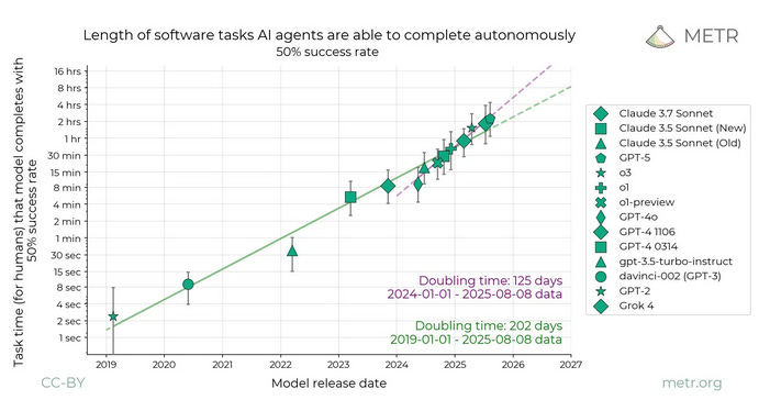 Thanks to METR, we now know that existing AIs have already passed a point where they can do most tasks that take humans seconds, are moving through the hour range, and are just about to touch one day. So the “seconds” anchor is ruled out. But it also seems unlikely that AGI will require years, because most human projects don’t take years, or at least can be split into tasks that take less than one year each (intuition pump: are we sure the average employee stays at an AI lab for more than a year? If not, that proves that a chain of people with sub-one-year time horizons can do valuable work). The AI Futures team guessed that the time horizon necessary for AIs to really start serious recursive self-improvement was between a few weeks and a few months (though this might look like a totally different number on the METR graph, which doesn’t translate perfectly into real life). If this is true, then all three anchors (seconds, hours, years) were off by at least an order of magnitude.
